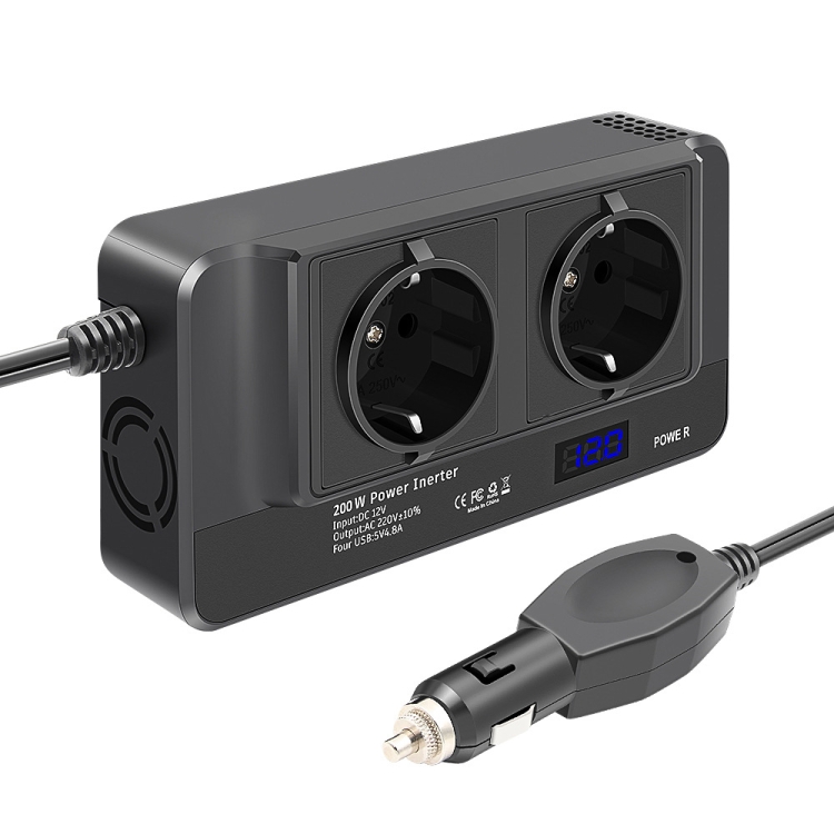 DC12V 200W AC220V Car Smart Multi-functional Digital Display Inverter, EU Plug