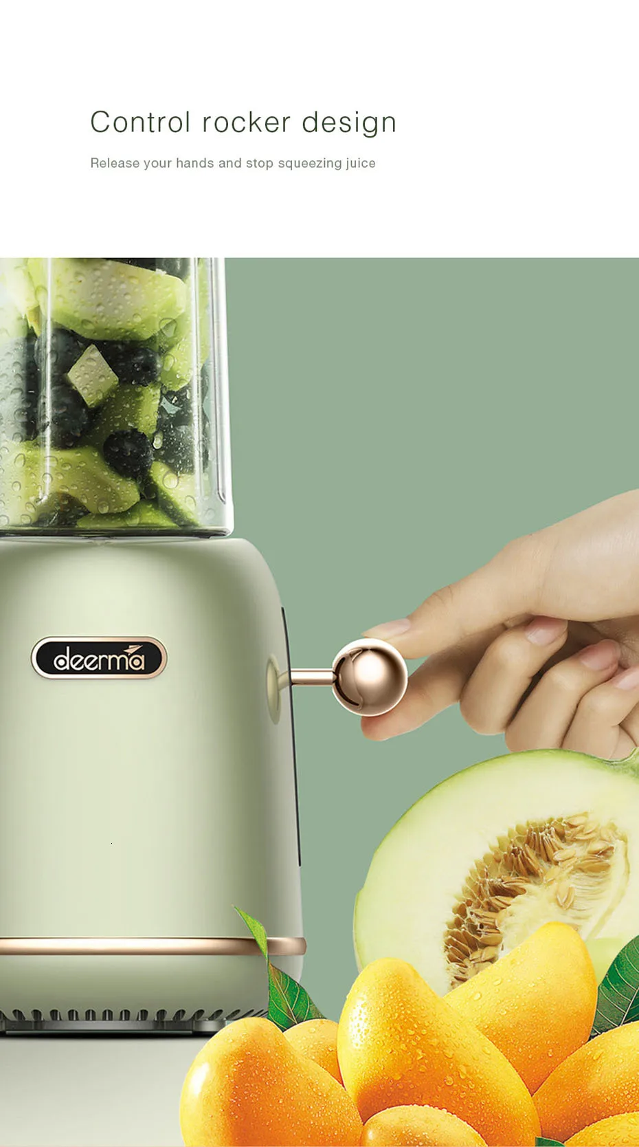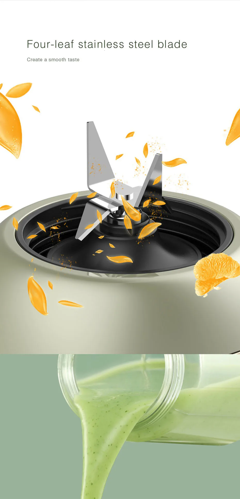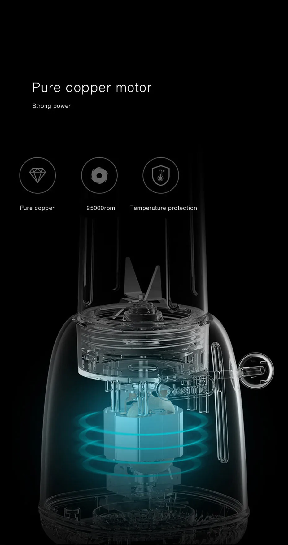 Electric Motor: Tough and powerful. – 10 seconds juicing, not wait too long.