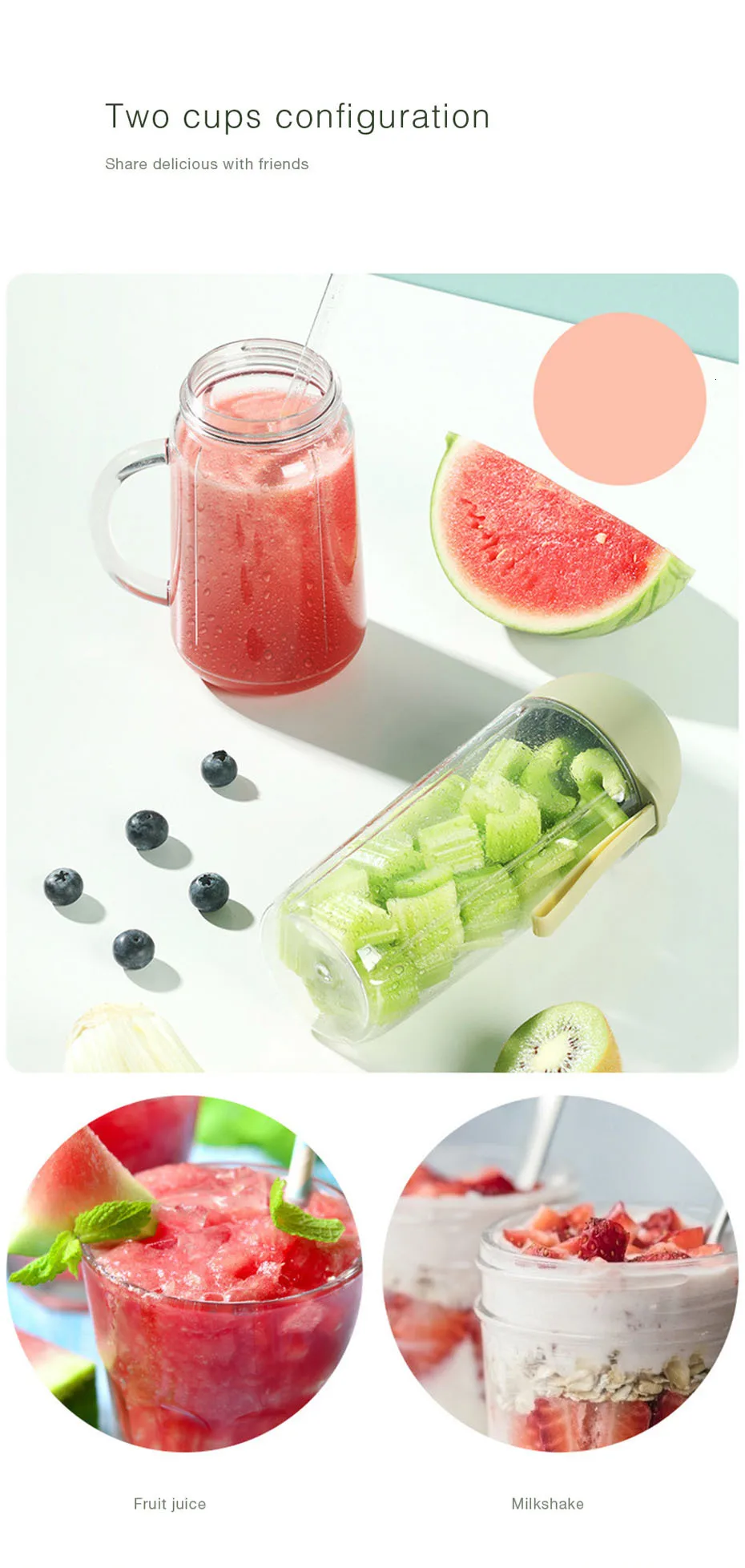 Package Contents: 1 x Juicer Set 2 x 500ml Cups 1 x Cup Lid 1 x Straw