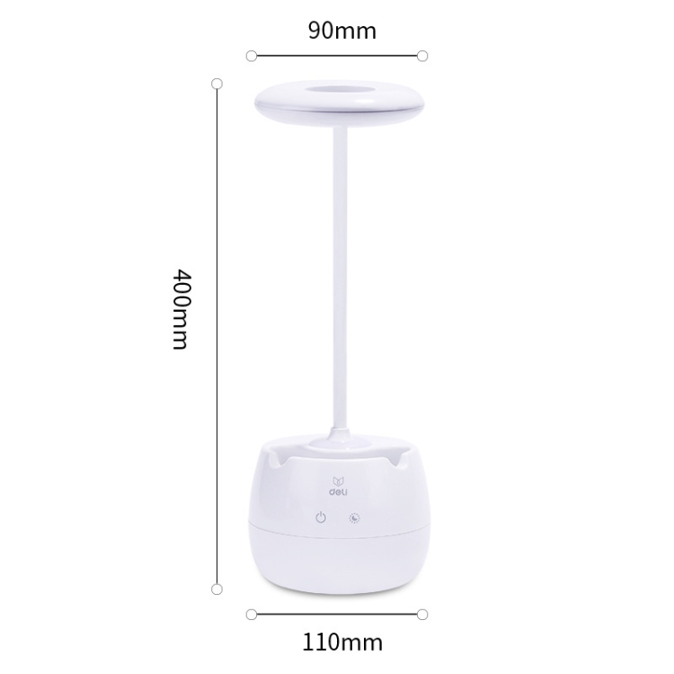 Deli 4326 Three-gear Adjustable Ring USB Charging Desk Lamp with Pen Holder