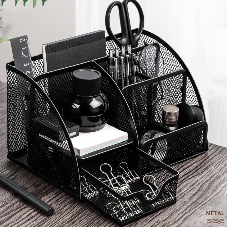 Deli 9200 Full Metal Hollow Pen Holder Office Supplies Storage Box