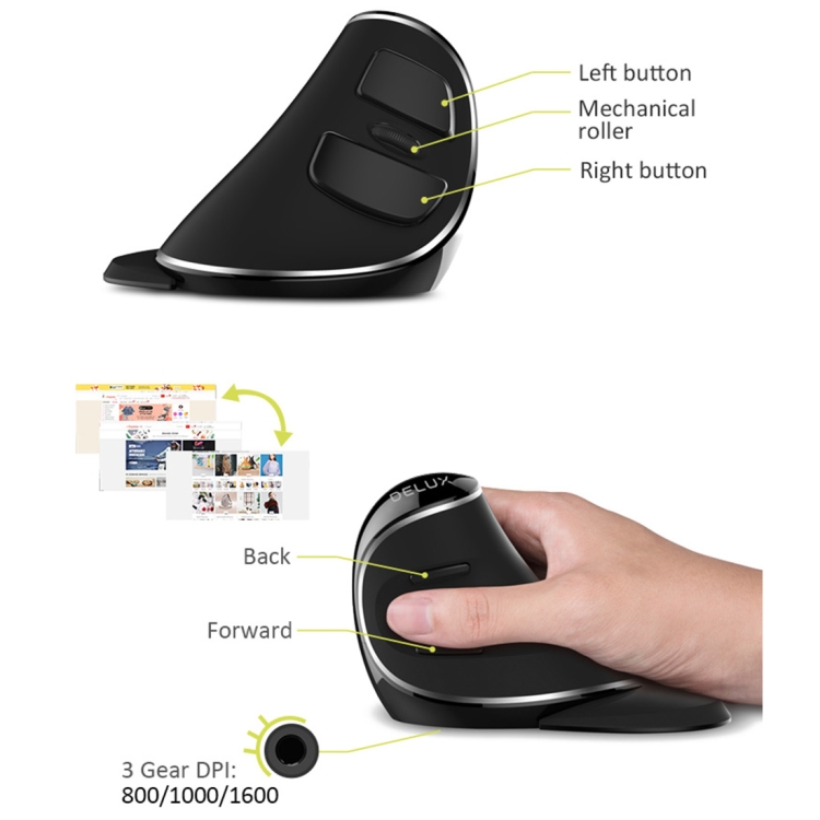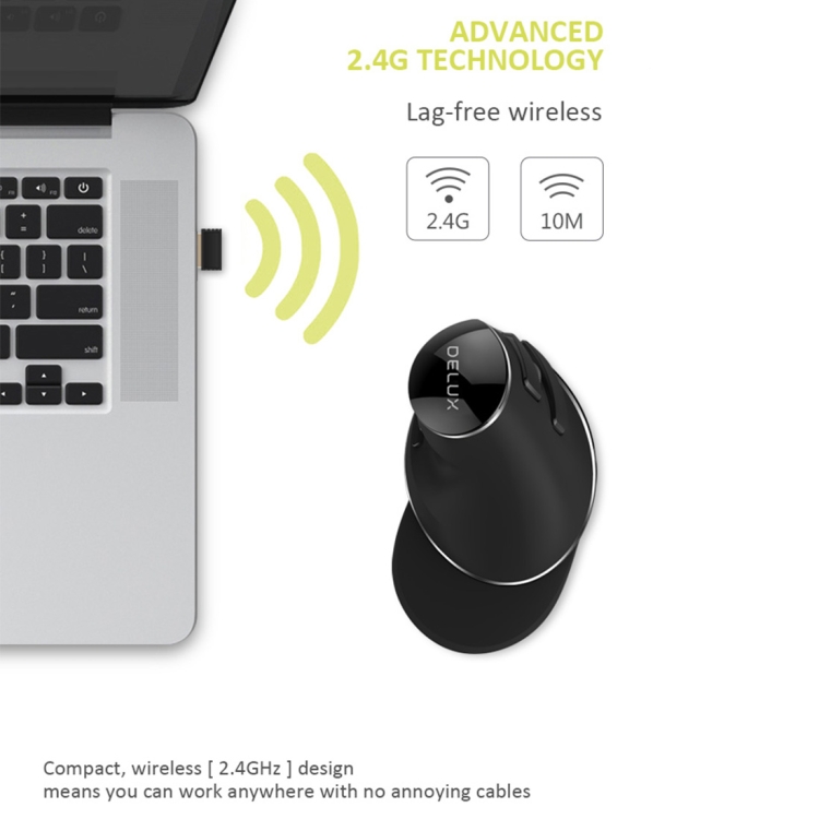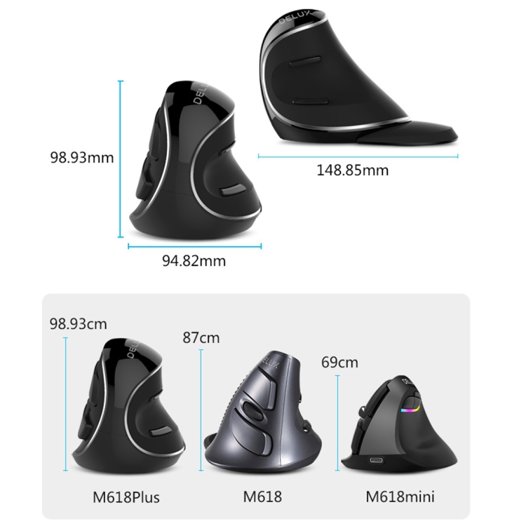 DELUX M618 Plus 2.4G 1600DPI Wireless Portable Vertical Ergonomic Mouse
