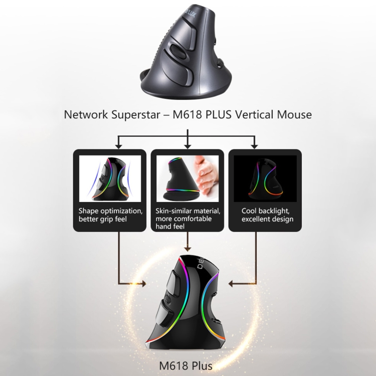 DELUX M618 Plus RGB Wired Optical Mouse Ergonomic Vertical Mouse 4000DPI