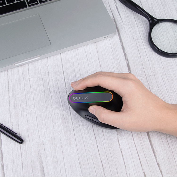 DELUX M618DB 6-Keys 1600 DPI RGB Vertical Wireless Bluetooth Dual-Mode Mouse