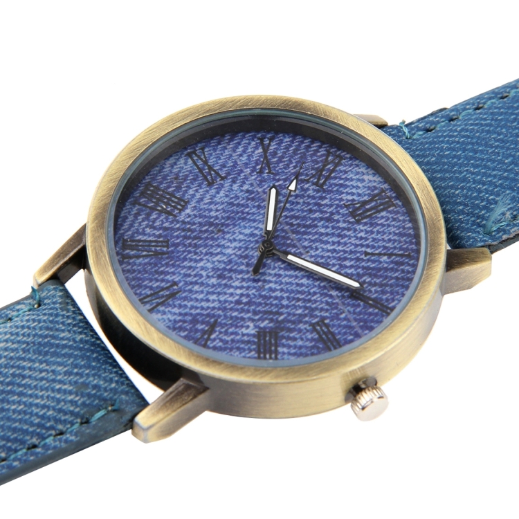Denim Texture Style Round Dial Retro Digital Display Women & Men Quartz Watch with PU Leather Band