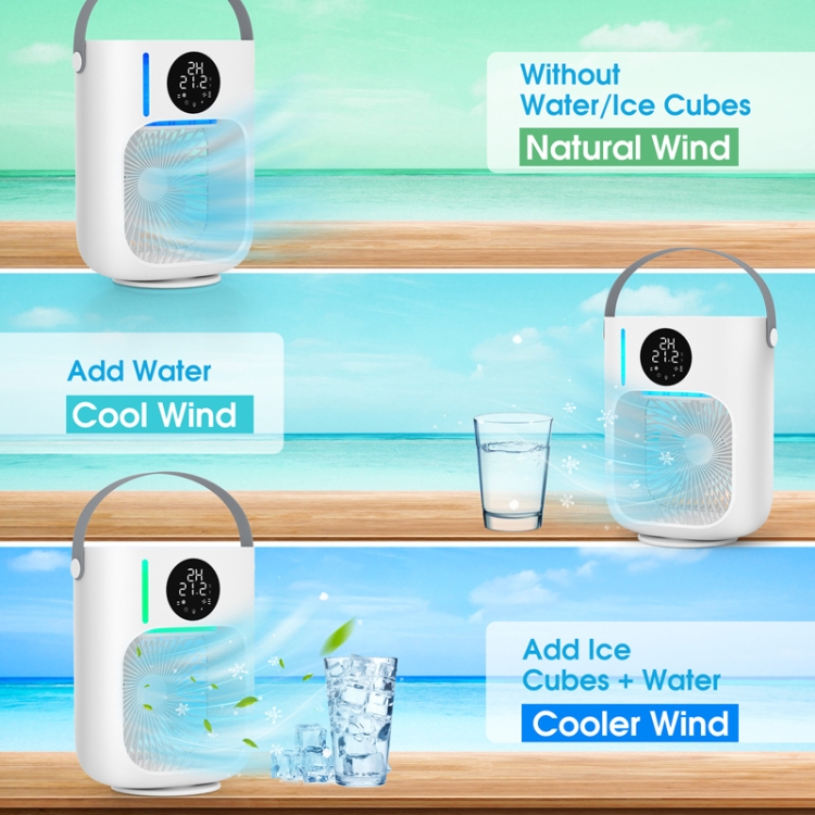1. High wind power, LED temperature display, 3 atomizing heads, ambient light, large water tank
