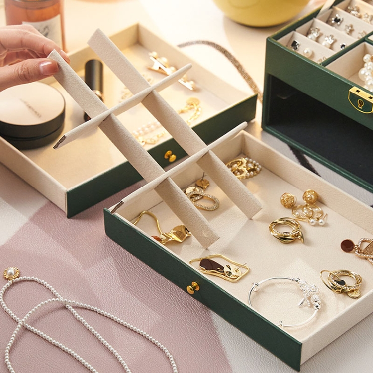Diamond Pattern PU Leather Three-layer Drawer Jewelry Box Necklace Ring Jewelry Storage Box
