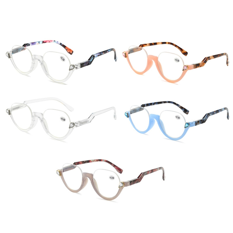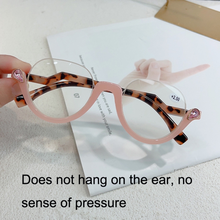 Diamond Studded Cat Eye Presbyopic Glasses Half-frame Fish-filament Glasses Unisex, Degree: