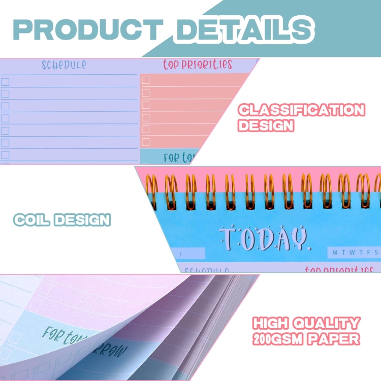 6. Can be used as a study planner, school daily to-do planner, grocery list notepad, shopping list, to-do list, reminder, kitchen notebook, class prize supplies, office supplies, etc., allowing you to quickly jot down important notes and remind you to do important things