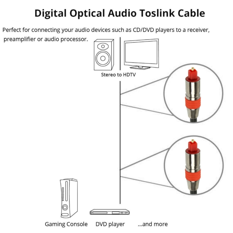 2. Toslink Digital Audio Cable provides you the cleanest possible signal, even at extreme volume levels.