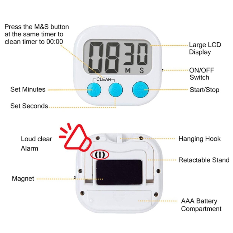 Digital Kitchen Timer Electronic Alarm Magnetic Backing with LCD Display for Cooking Baking Sports Games Office