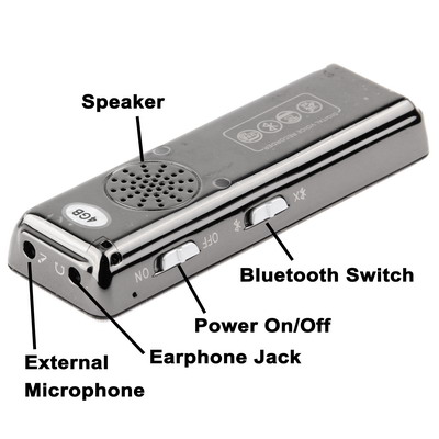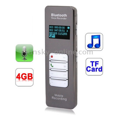 Digital Voice Recorder MP3 Player with 4GB Memory, Support Mobile Bluetooth recording, Mobile Phone Answering & Redialing, Telephone recording, TF Card, Timer recording, Built in rechargeable Lithium-ion battery (188)