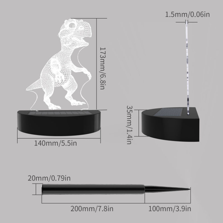 Dinosaur Solar 3D Lawn Projection Light Acrylic Garden Plug-In Lamp