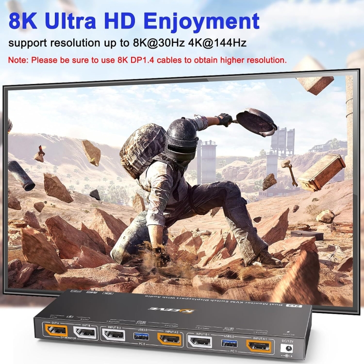 Displayport 1.4/8K KVM Switch Support KVM Mode and USB Mode with Voice Control