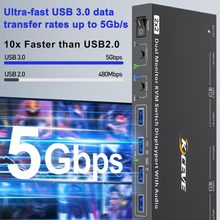 5. Comes with 4 USB 3.0 ports for sharing mouse, keyboard, USB printer, scanner, etc.