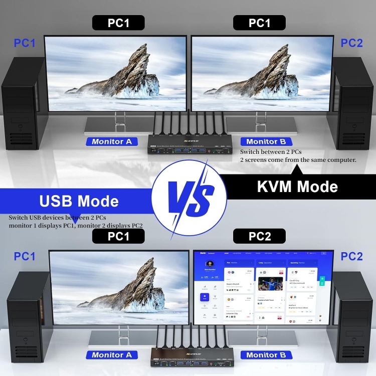 4. KVM mode and USB mode: