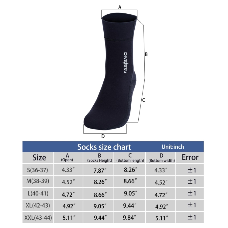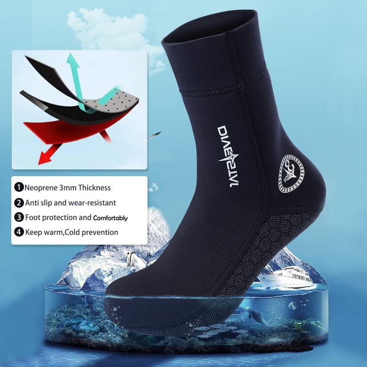 1. High-top diving socks are available in two thicknesses: 3mm/5mm. They are made of elastic nylon cloth and are durable and wear-resistant.