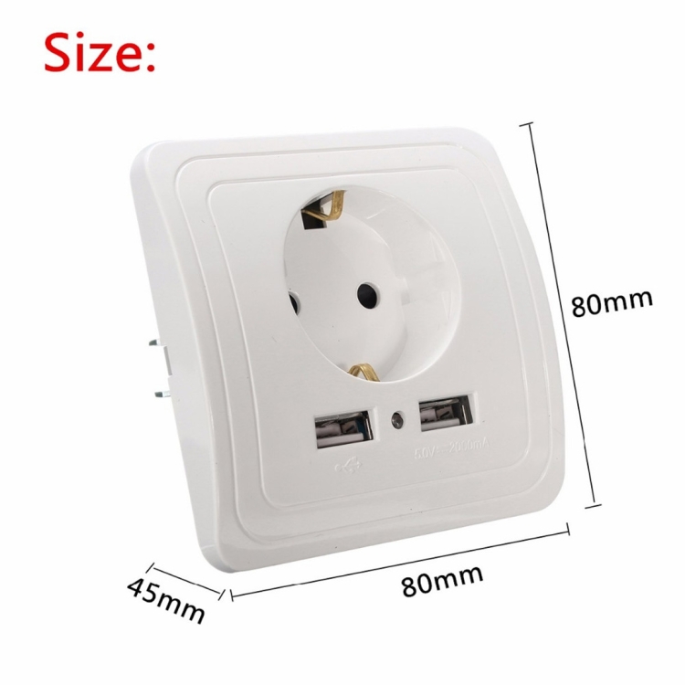 3. Concerning this special wall socket, dual USB interface and a two-pronged outlet are on the shell.