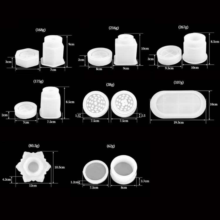 7. Weight: cylindrical bottle + grinder 305 g; receive round + grinder 100 g; diamond column + cylinder bottle 435 g; lotus storage + grinder 118.5 g; width + high square bottle 391 g; Wuling bottle + grinder 206 g; Wuling bottle + grinder + elliptical dish 313 g