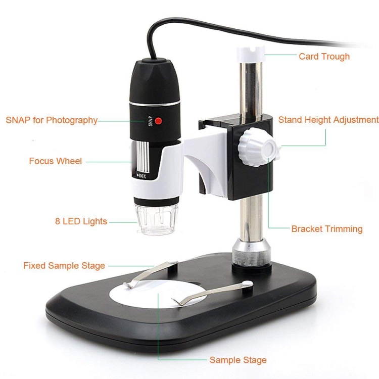 DMS-MDS800 40X-800X Magnifier 2.0MP Image Sensor USB Digital Microscope with 8 LEDs & Professional Stand