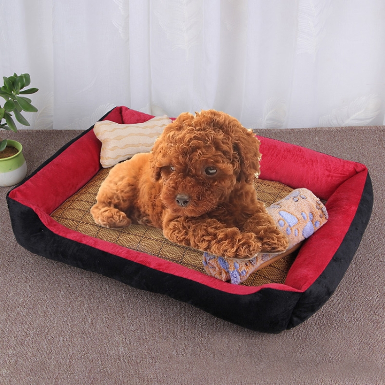 Dog Bone Pattern Big Soft Warm Kennel Pet Dog Cat Mat Blanket, with Rattan Mat & Blanket Size: M, 70×50×15cm
