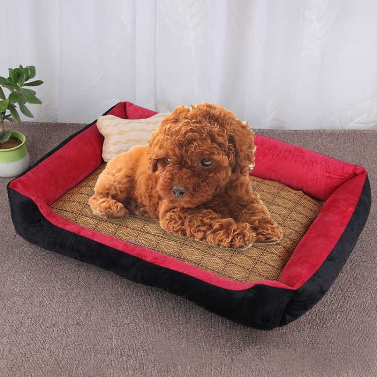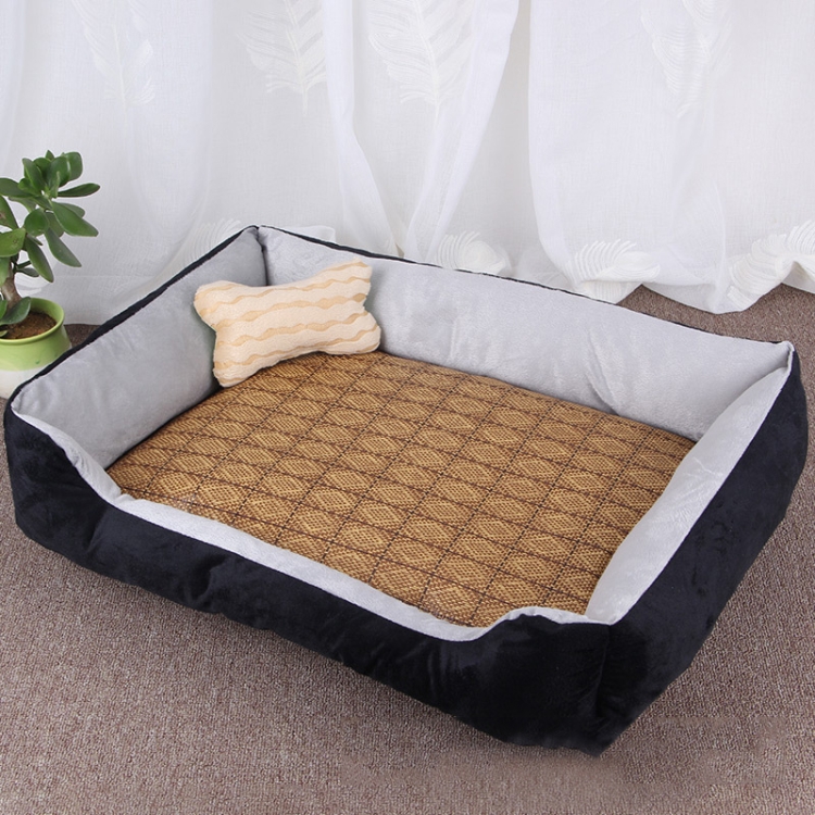 Dog Bone Pattern Big Soft Warm Kennel Pet Dog Cat Mat Blanket, with Rattan Mat Size: L, 80×60×15cm