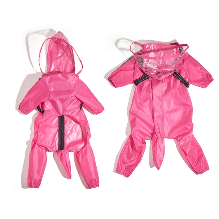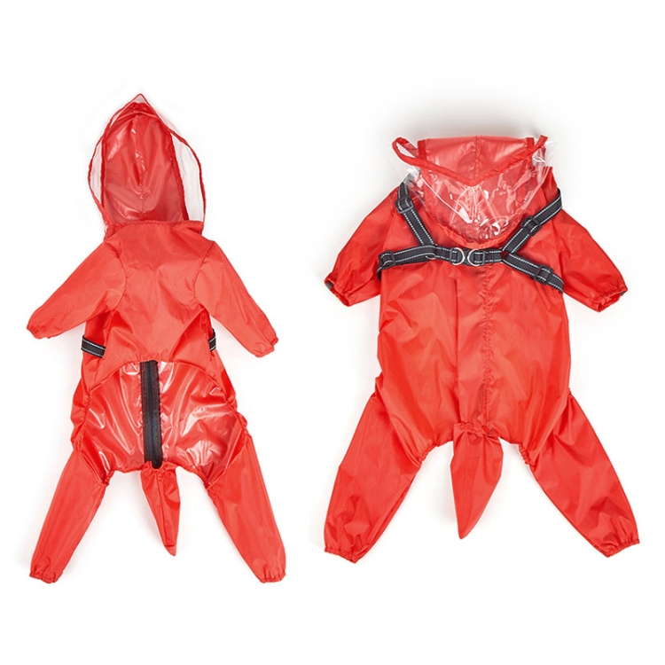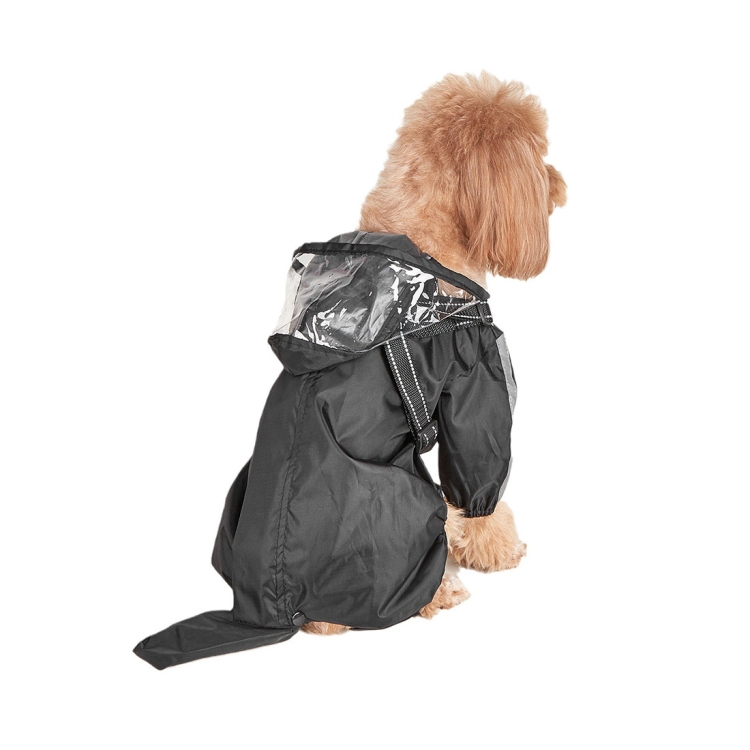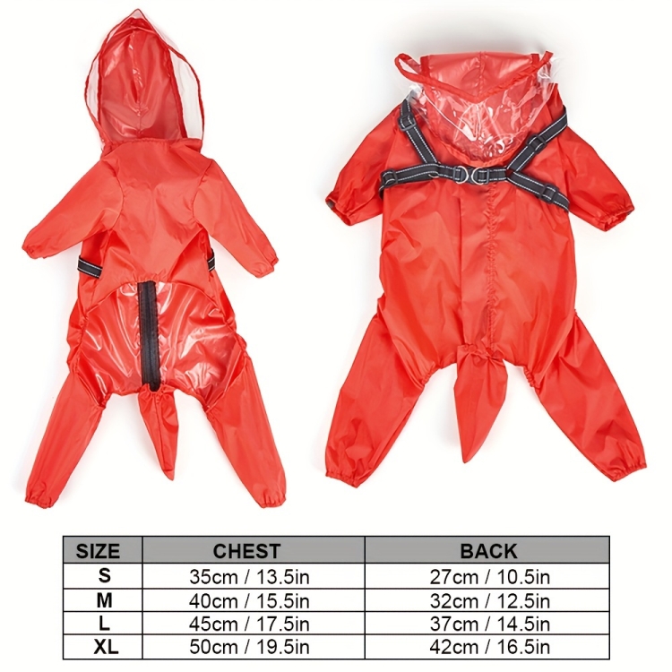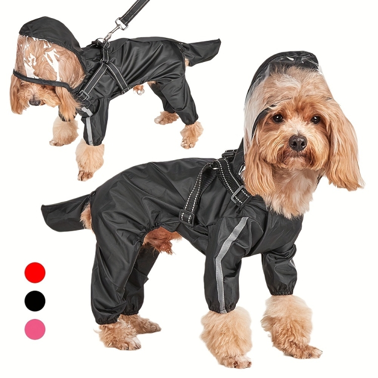 Dog Raincoat with Hood Integrated Harness Leash -Easy Wear, Four-Legged Design