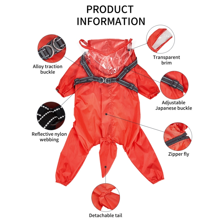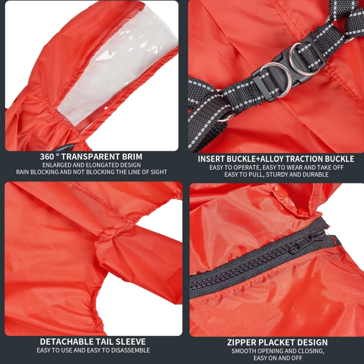 3. Convenient Buckle System: The raincoat includes an easy-to-operate insert buckle and a sturdy alloy traction buckle, making it simple to put on and take off. This feature ensures a secure fit and makes attaching a leash quick and effortless.