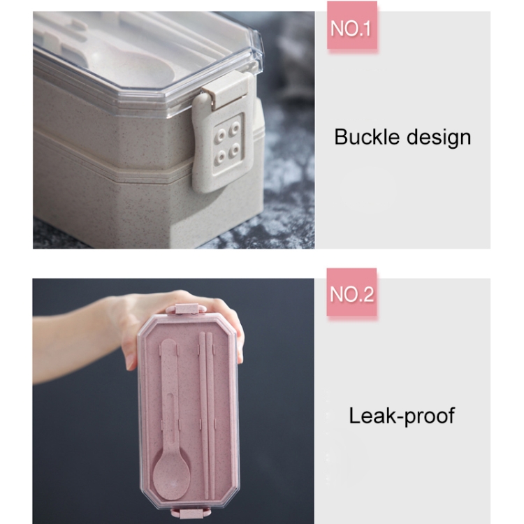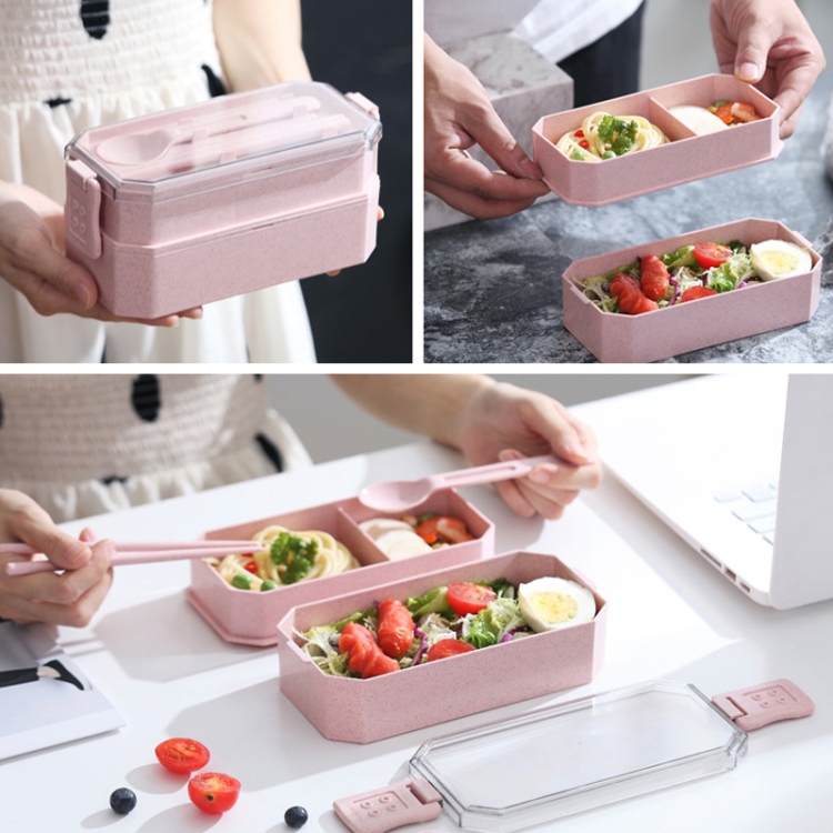 Double-layer Lunch Box Plastic Microwaveable Student Lunch Box Cutlery set