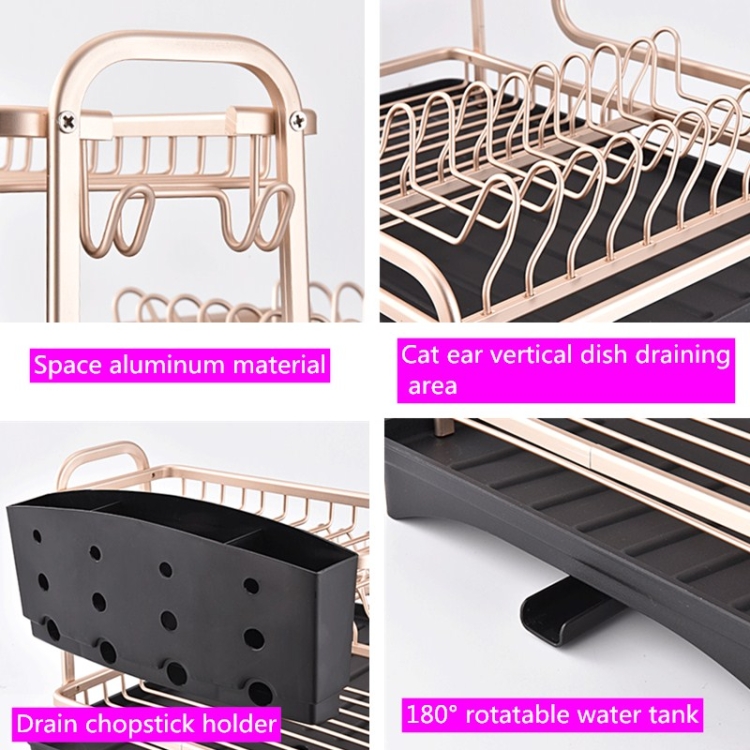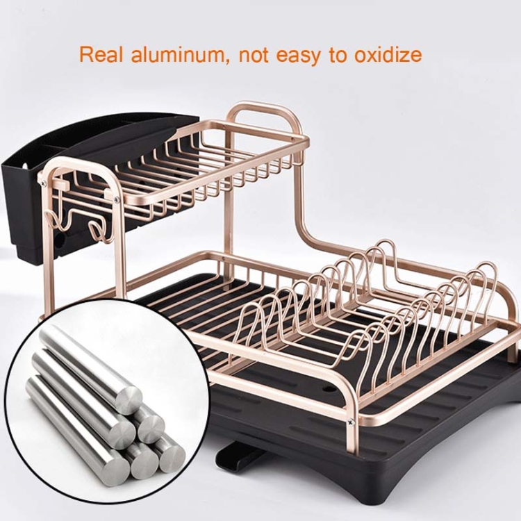 Double-layer Space Aluminum Dish Rack Kitchen Drain Rack