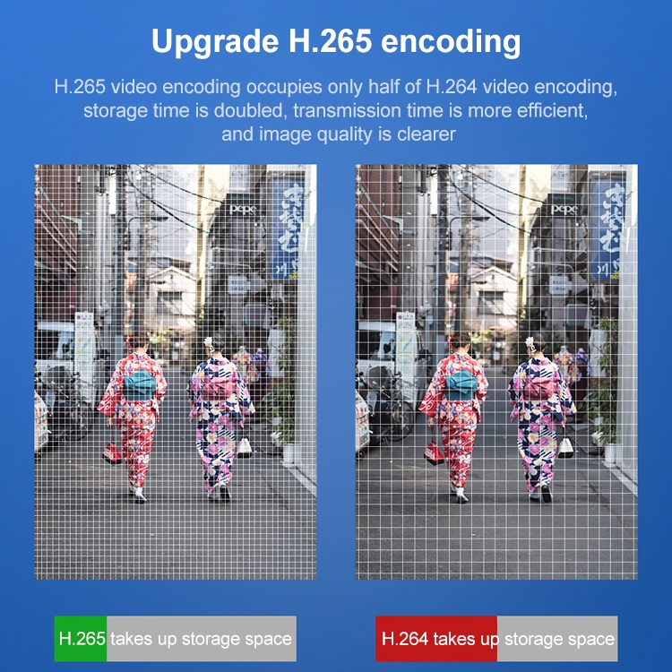 2. H.265 video encoding, storage is halved, and clarity is doubled
