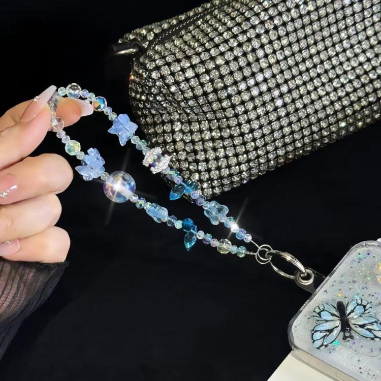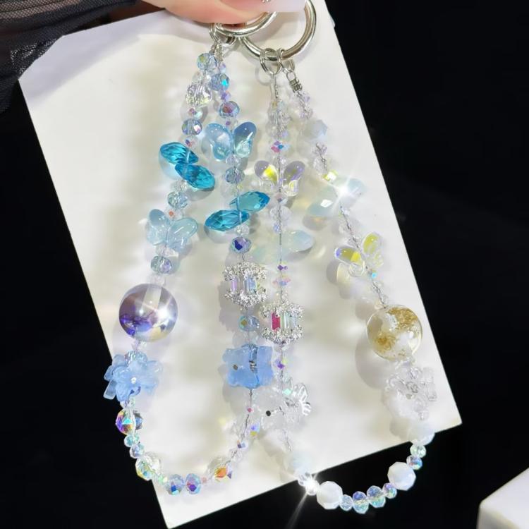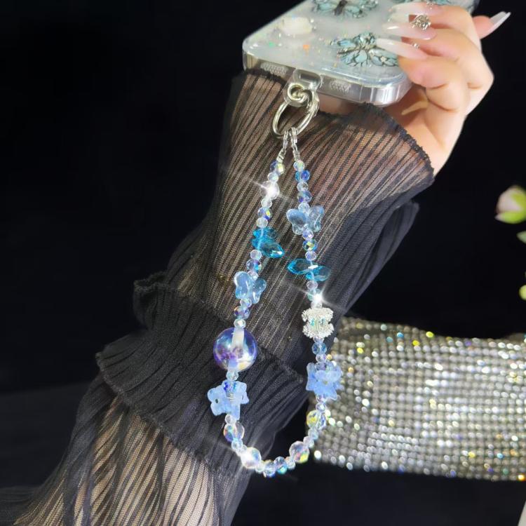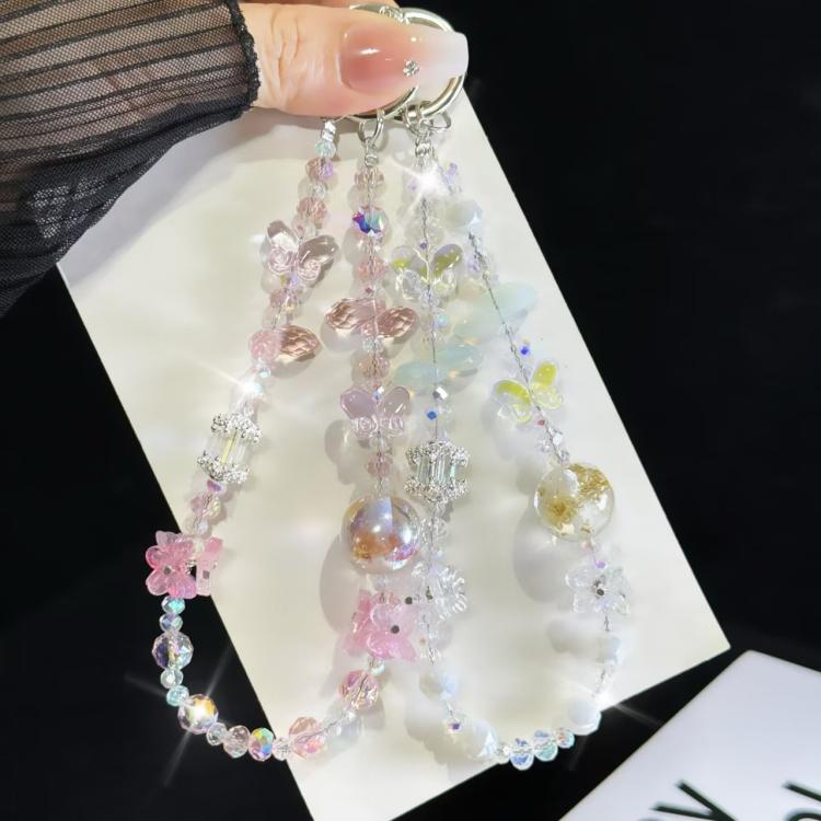 Dried Flower Beads, Butterfly Crystal, Mobile Phone Chain