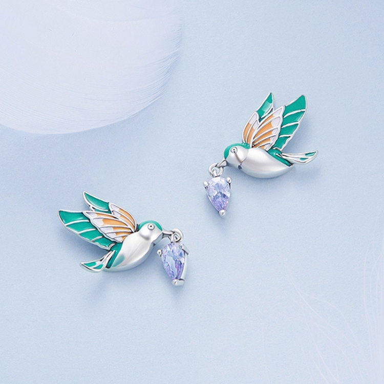 Drip Oil Craft Kingfisher Earrings Ring Set 925 Silver Jewelry, Style: