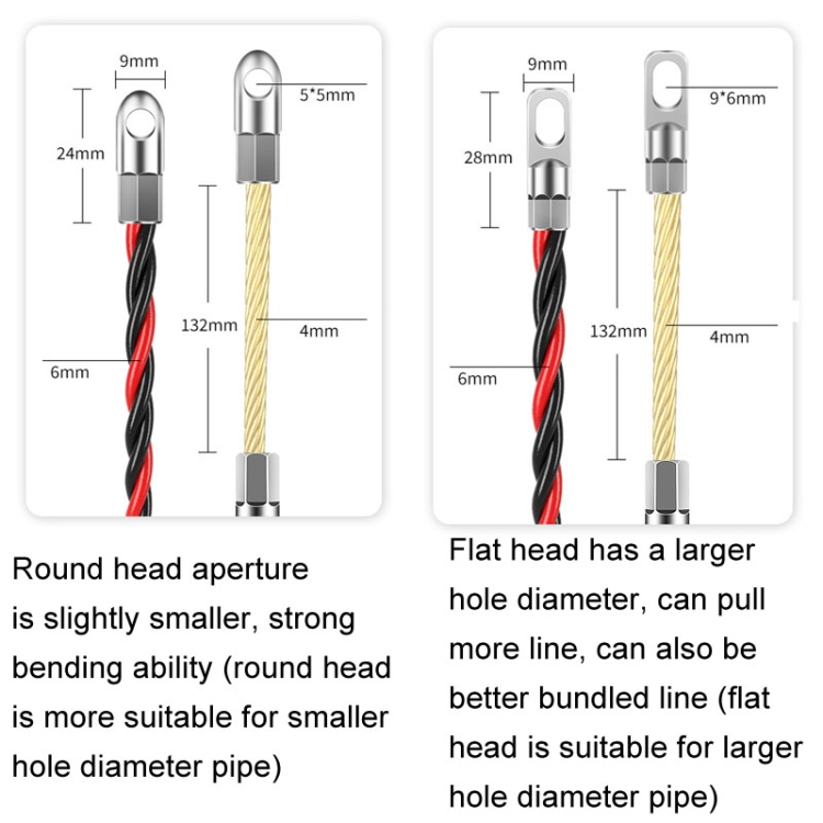 7. Flat head with a larger hole diameter, you can pull more wire, but also better bundled wire (flat head is suitable for tubes with a larger hole diameter)