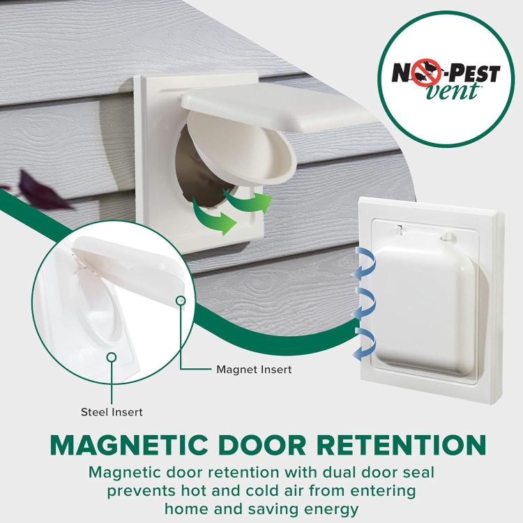 3. Features a magnetic closure that blocks airflow and opens easily without restriction when positive air pressure is detected from bathroom and dryer vents.