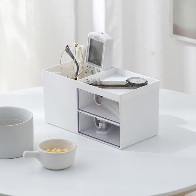 Dual Drawers Desktop Plastic Storage Box Makeup Organizer Case Cosmetic Container