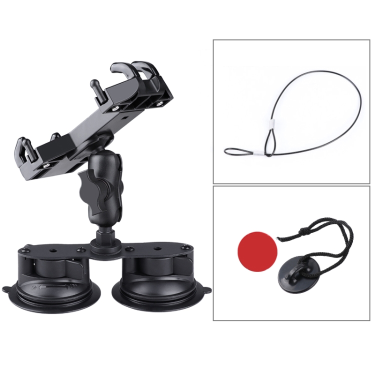 Dual Suction Cup Mount Phone Holder with Tripod Adapter & Steel Tether & Safety Buckle