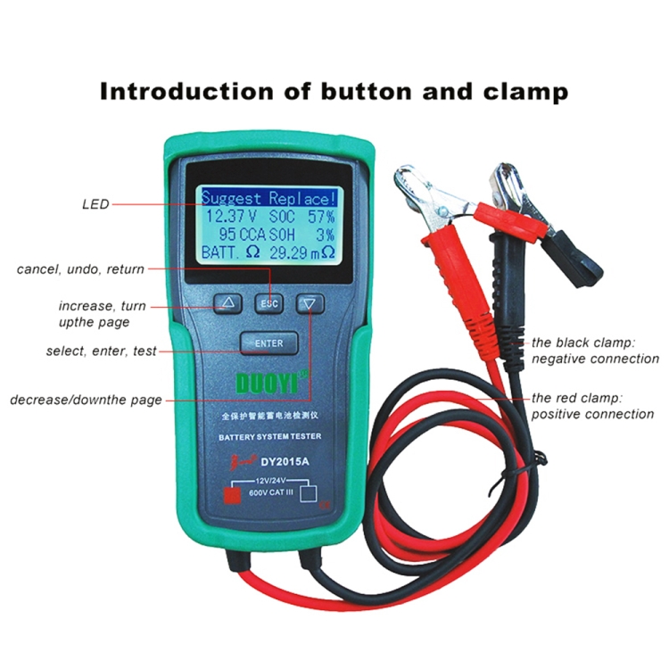 DUOYI DY2015A Car 12V 24V Digital CCA Load Battery Charging Digital Capacity Tester