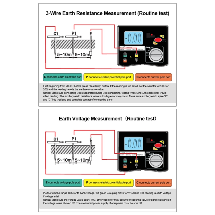 4. Ground resistance measurement range is 0.01 ohms to 2000 ohms with a resolution of 0.01 ohms.
