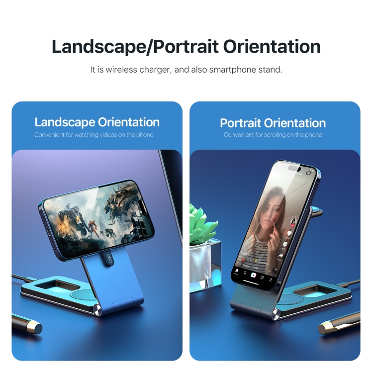 DUZZONA W22 15W 3 in 1 Foldable Magnetic Wireless Charging Stand