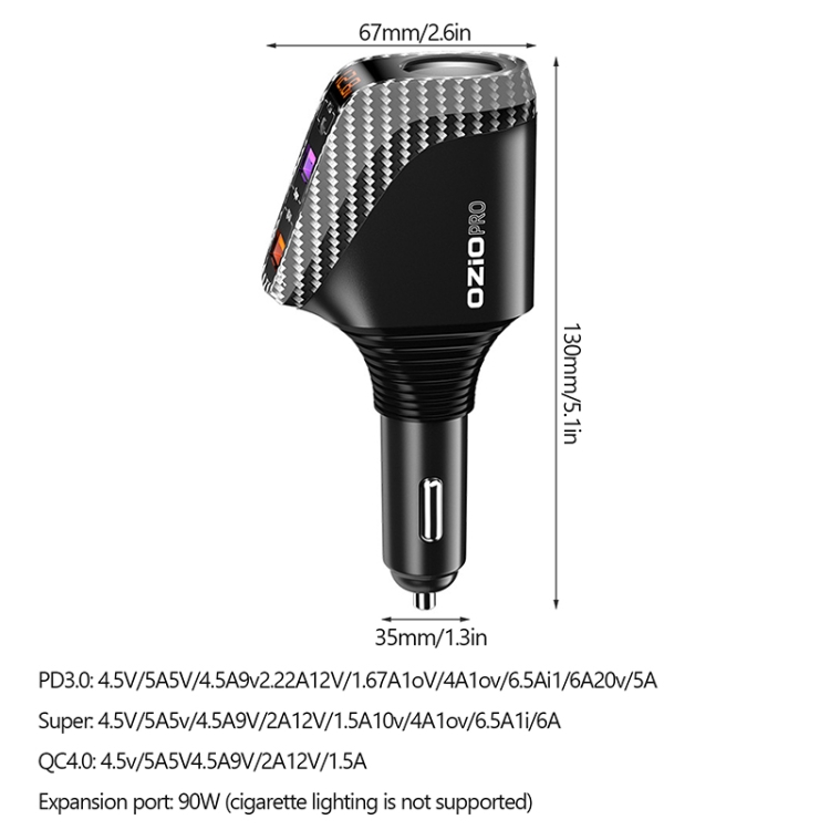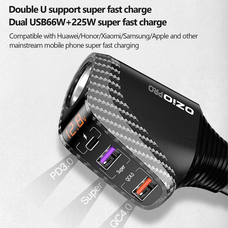 DY68TC 278W PD3.0 100W + Dual USB 66W+22.5W Carbon Fiber Pattern Car Charger
