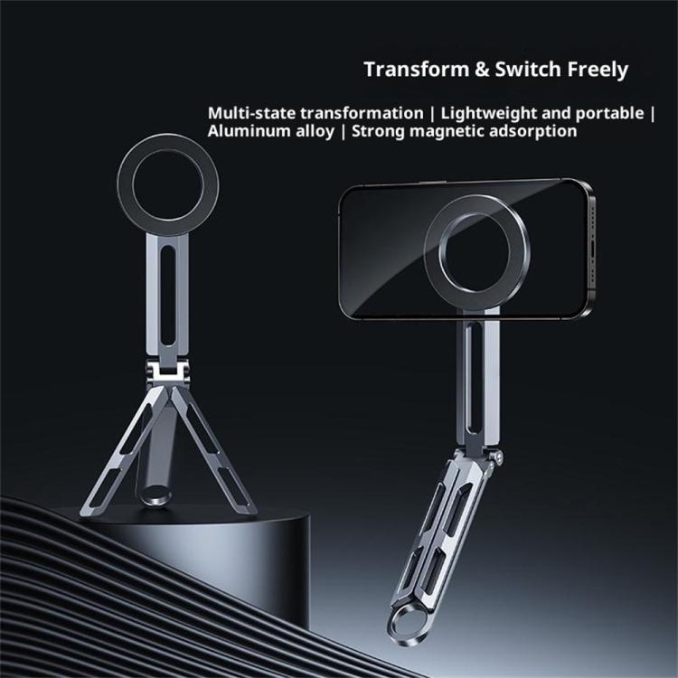 E06 Folding Aluminum Alloy Desk Stand Magnetic Tripod Phone Holder for 4-7 Inch