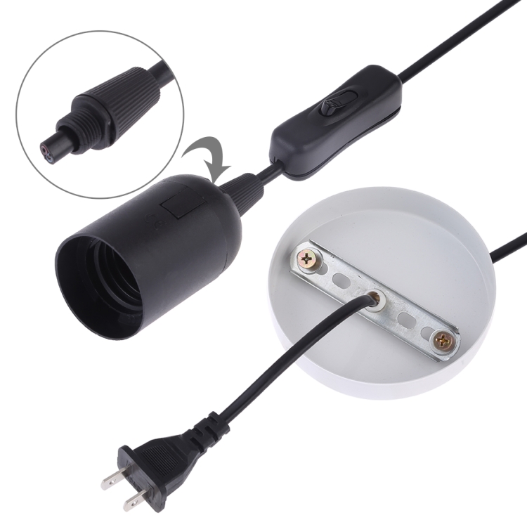 E27 Wire Cap Lamp Holder Chandelier Power Socket with Switch & Base & 1.5m Extension Cable, US Plug