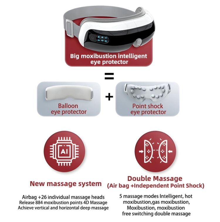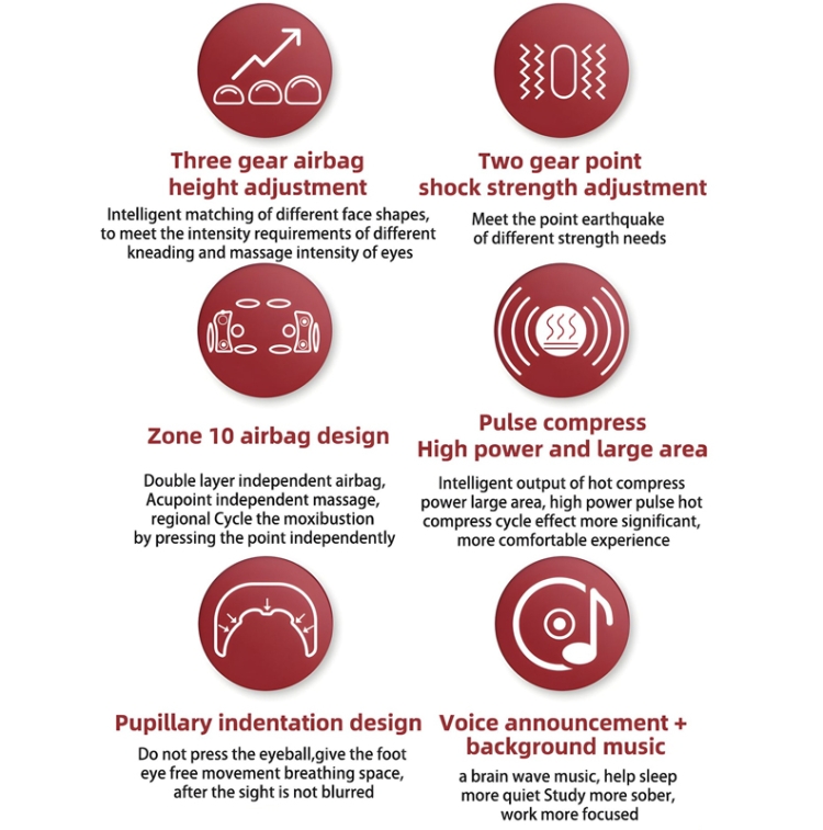 2. Three levels of airbag height adjustment, intelligently match different face shapes, and meet the strength requirements of different kneading and massage strengths of the eyes