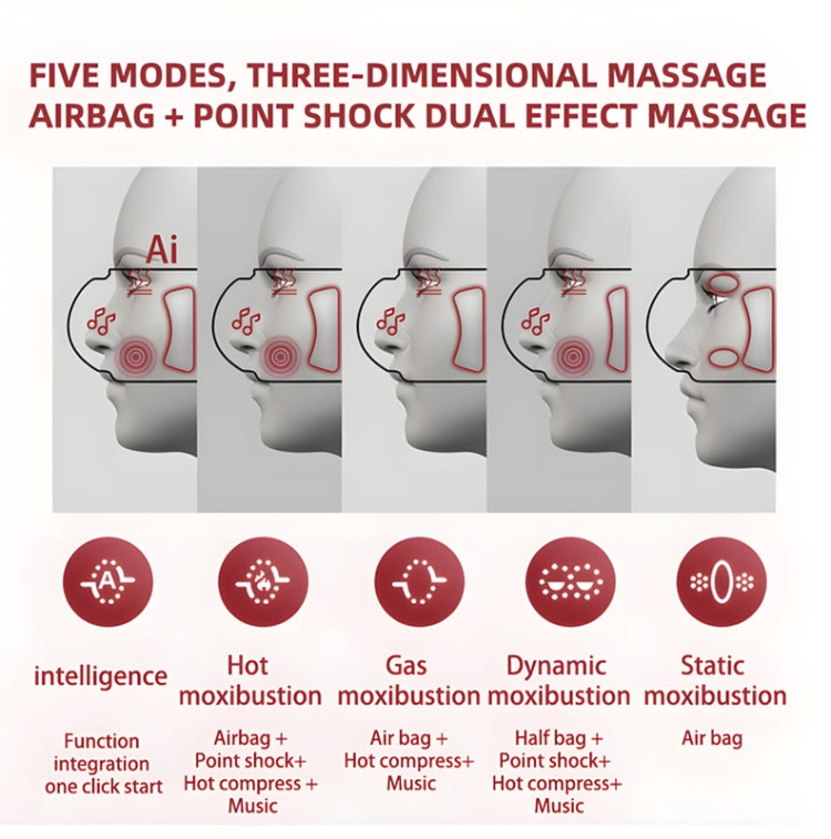 4. Five massage modes: intelligent, hot moxibustion, air moxibustion, dynamic moxibustion, static moxibustion