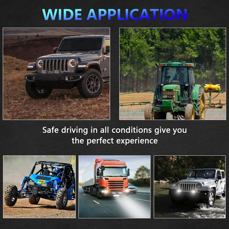 5. Compatible with all motorcycles, jeeps, 4x4s, tractors, trailers, golf carts, pickup trucks, cars, SUVs, ATVs and boats, etc. Equally suitable for indoor and outdoor use: garden lighting, backyard lighting, reverse lights, off-road lighting, architectural lighting, etc.