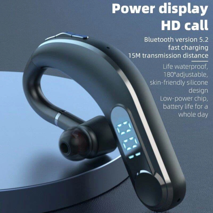 Ear-Mounted Waterproof Sports Smart Noise Reduction Bluetooth Earphones With LED Battery Display