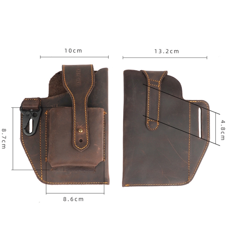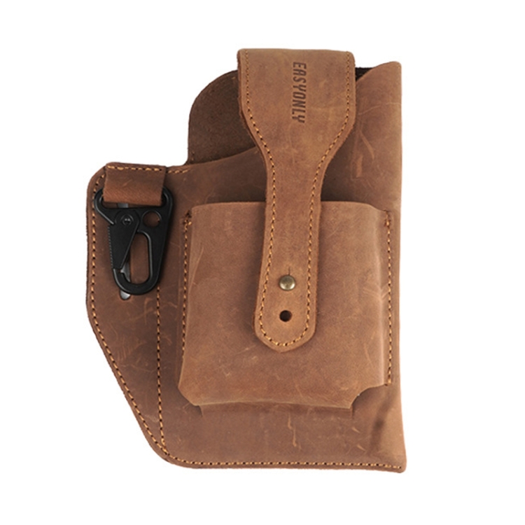 EASYONLY Men Dual Phone Hanging Pocket Bag Outdoor Leather With Cover Anti-lost Bag