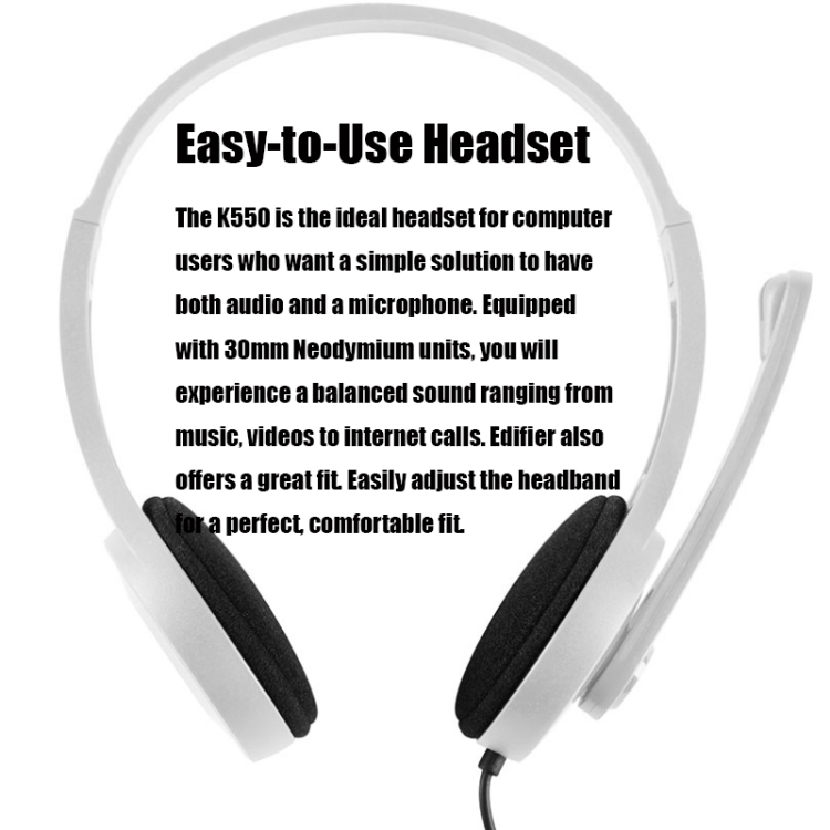 Edifier K550 3.5mm Plug Wired Wire Control Stereo Computer Game Headset with Microphone, Cable Length: 2m