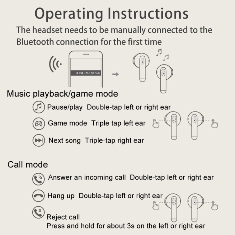 9. Fingertip tap operation, you can complete the game mode, music switching call answering and other functions